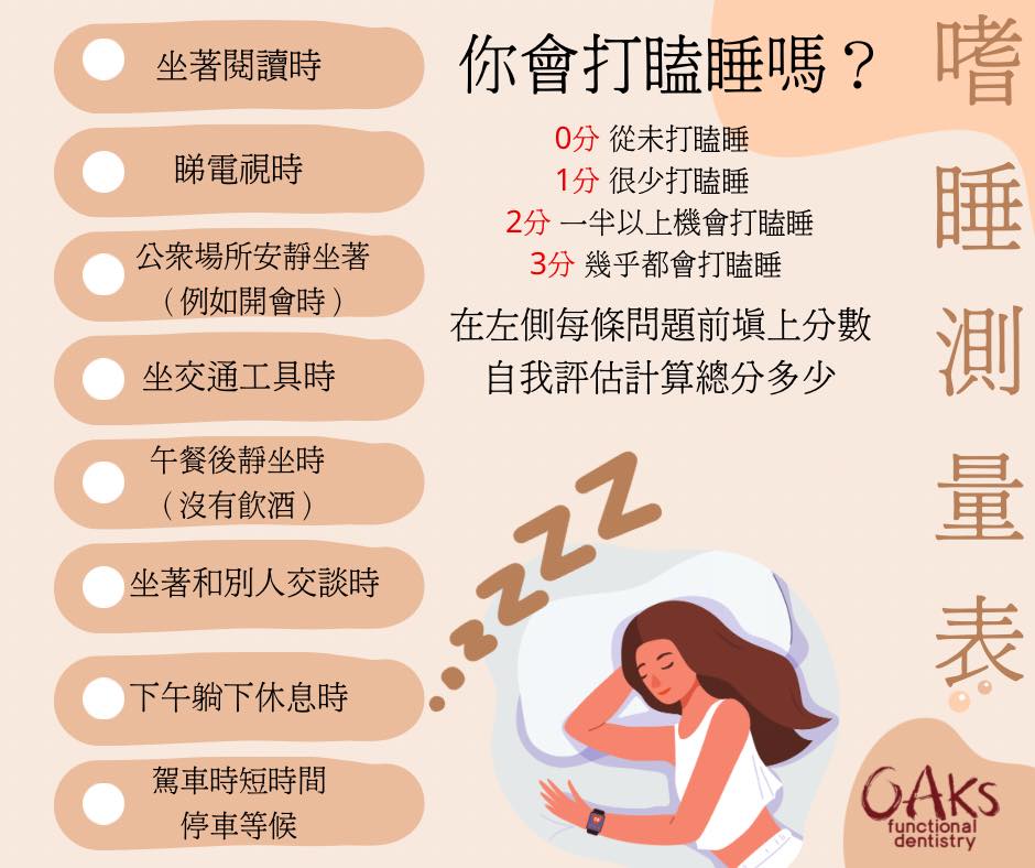 評估方式(0分從未打瞌睡 1分很少打瞌睡2分一半以上機會打瞌睡 3分幾乎都會打瞌睡)